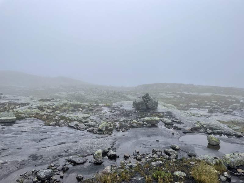 The weather did not offer the best start as the fog was so dense we could barely see from one cairn to the next. Thankfully Garmin came to the rescue as my watch vibrated every time we ventured off the pre-programmed path.