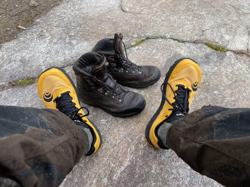 The biggest concerns so far are the feet, knees and hips. Bringing an extra pair of ultralight hiking shoes in addition to my hiking boots was a good decision. Even on day one it was blissful to get out of the sheep crap covered boots and step into a soft pair of shoes.
