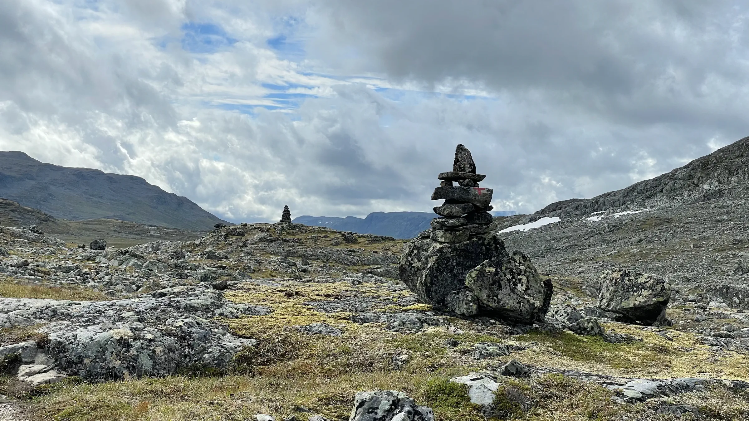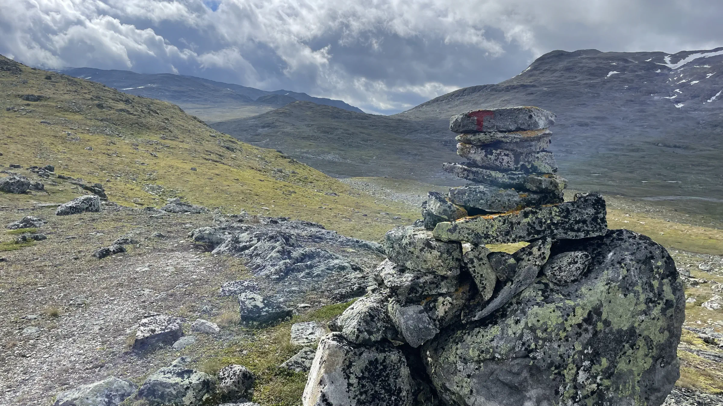 The plains for 7-8 km after Masseringsnosi were like a hikers highway, allowing to make great distances in a really magnificent landscape. This is also the section so far that has been best marked. The cairns are well built, frequent and visible. Well done, DNT Skarvheimen!