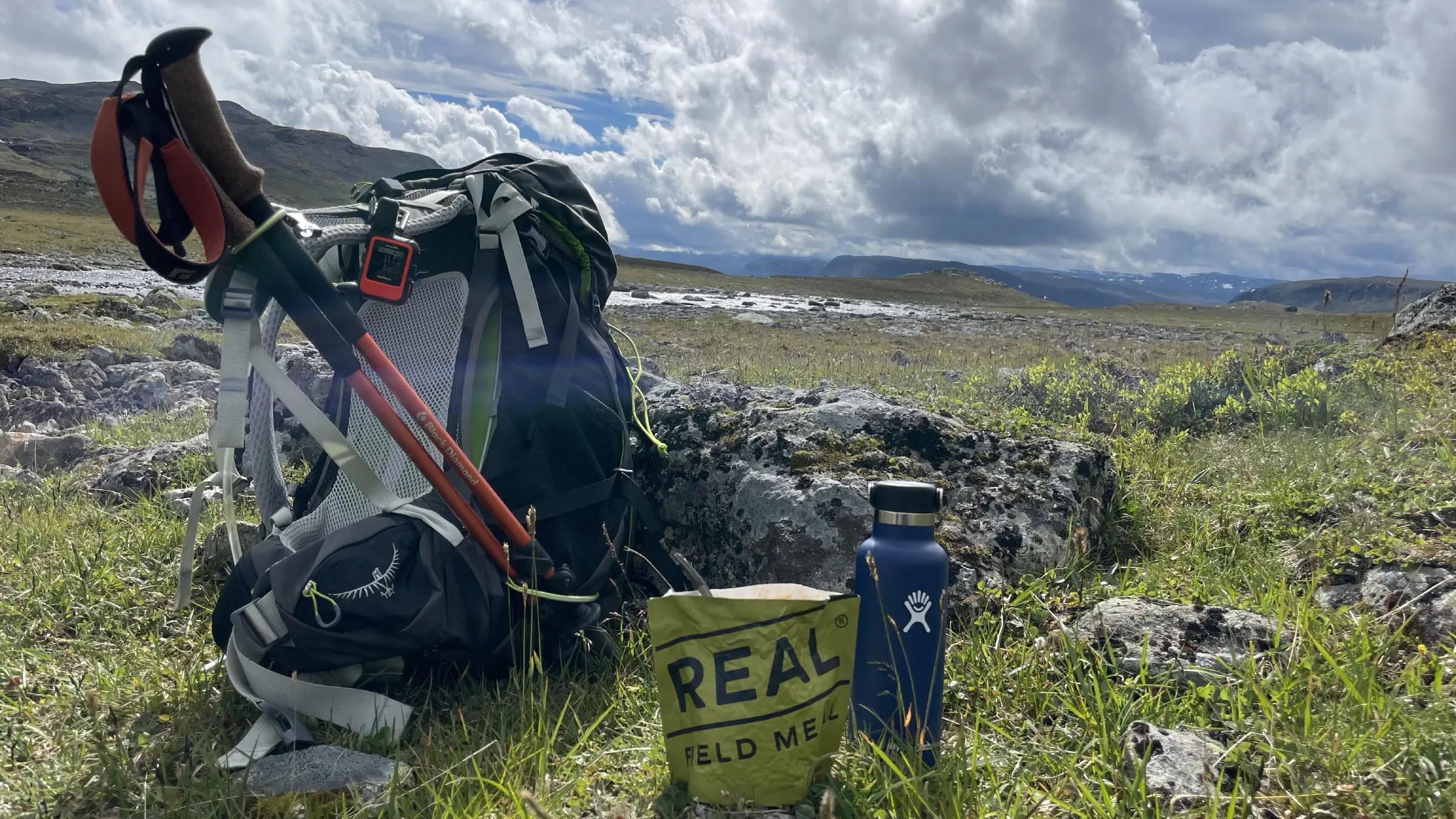 Had a lovely Real Field Meal lunch east of Masseringsnosi, right next to a beautiful stream. And Bamsemums for dessert, one of the “unnecessary” luxuries I’m allowing myself on this trip.