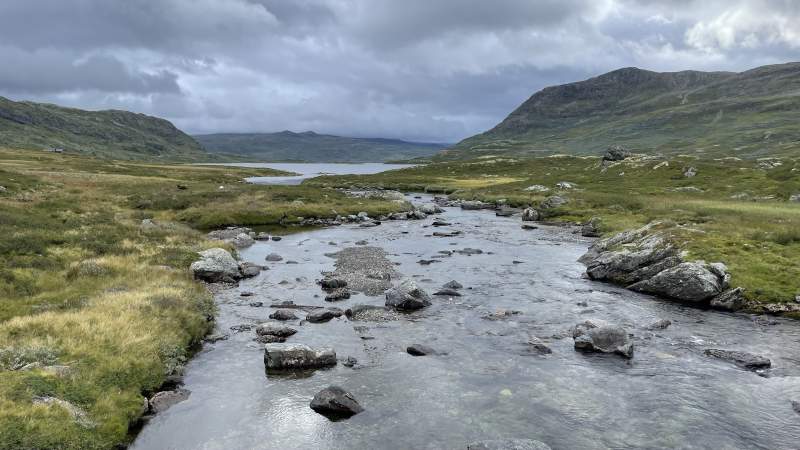 Having mentally prepared for a strenuous section today, the physical part went far better than expected, and moving time came in at only about seven hours compared to the ten hours I had planned. On top of that however came a bit over hour and a half unscheduled break at Kongshelleren to dry my clothes. While the physical part went OK, the weather was horrible for the first 25 kilometres. The combination of cold temperatures, lots of rain and heavy head winds made clothes-piercing needles of water that had me thoroughly soaked in a couple of hours. I gave up on the rain coat as it, as most rain coats, has poor ventilation and the choice was being soaked in sweat or soaked in rain. I chose the latter, as my Fjällräven jacket at least offers some temperature protection, and I figured it, plus the wool t-shirt, would serve almost like a wetsuit, keeping the water warm. It worked a bit better than expected, but it was still a rather long and miserable section.
