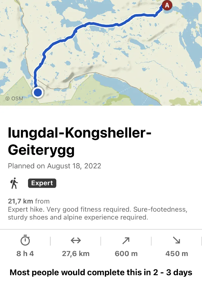- Toughest section: Boulders towards Kongshelleren in heavy rain.