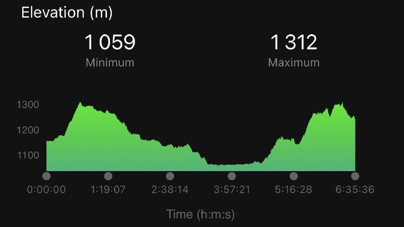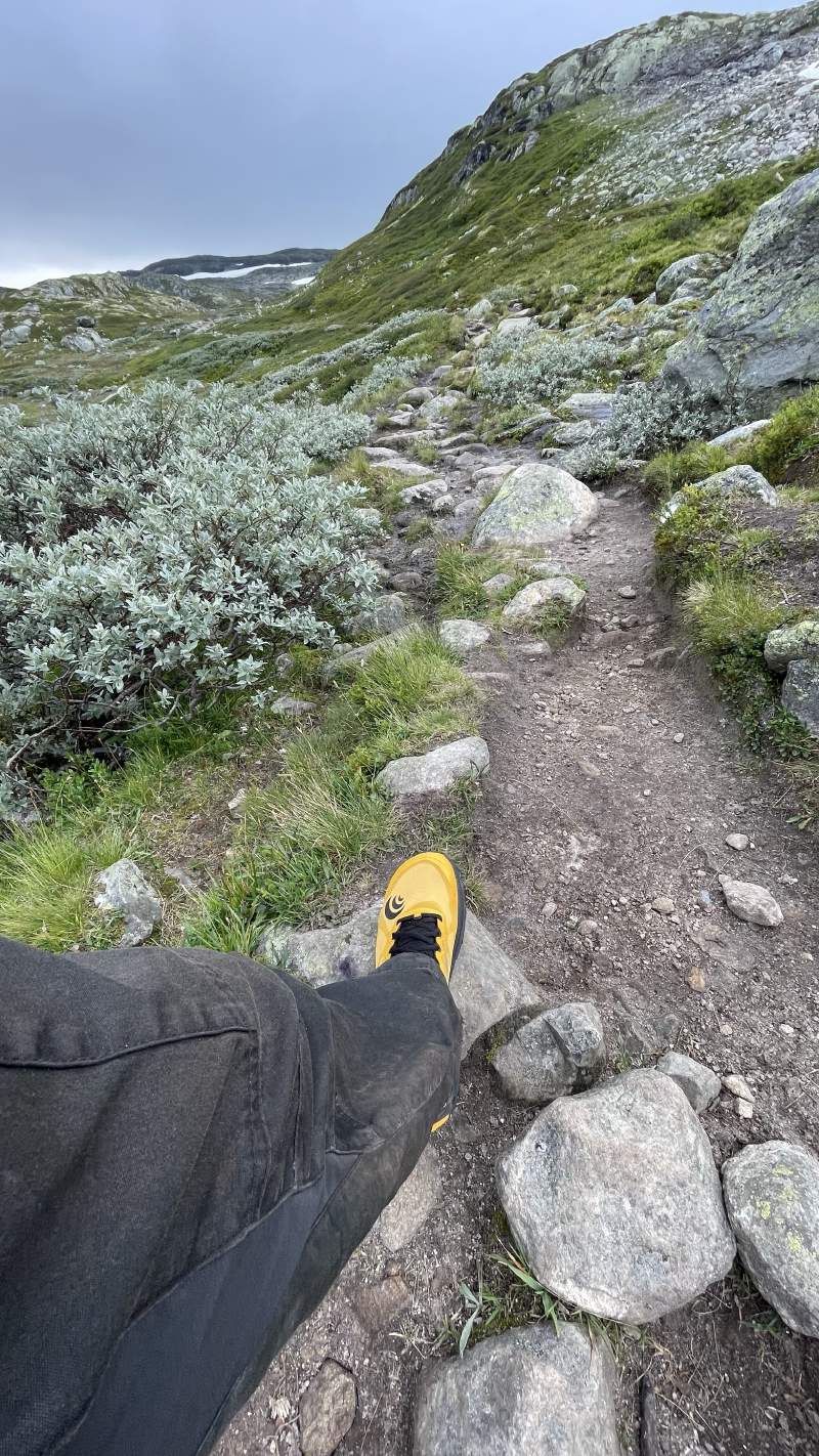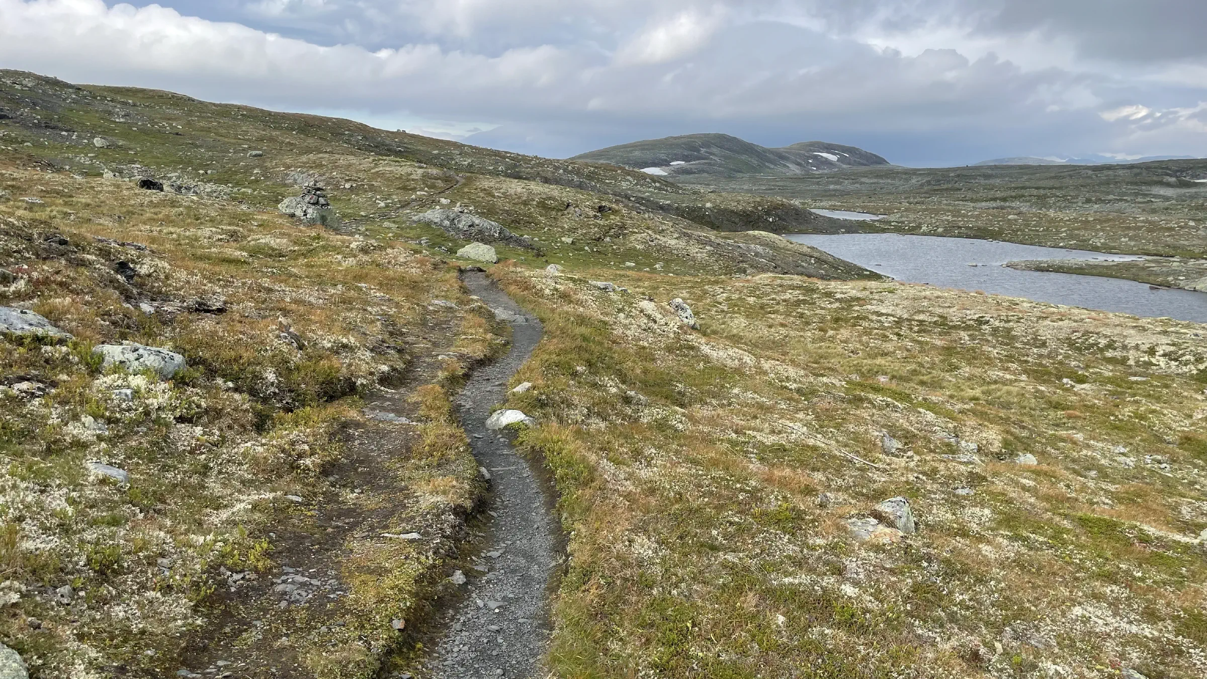 Compared to the other three mountain areas Hardangervidda is relatively flat, yet today’s section still offered a couple of ascents, with the second one between 15 and 17km was relatively steep compared to the past week’s hikes. Total ascent was 1069m with a total descent of 979m. The highest point was at 1312m.
