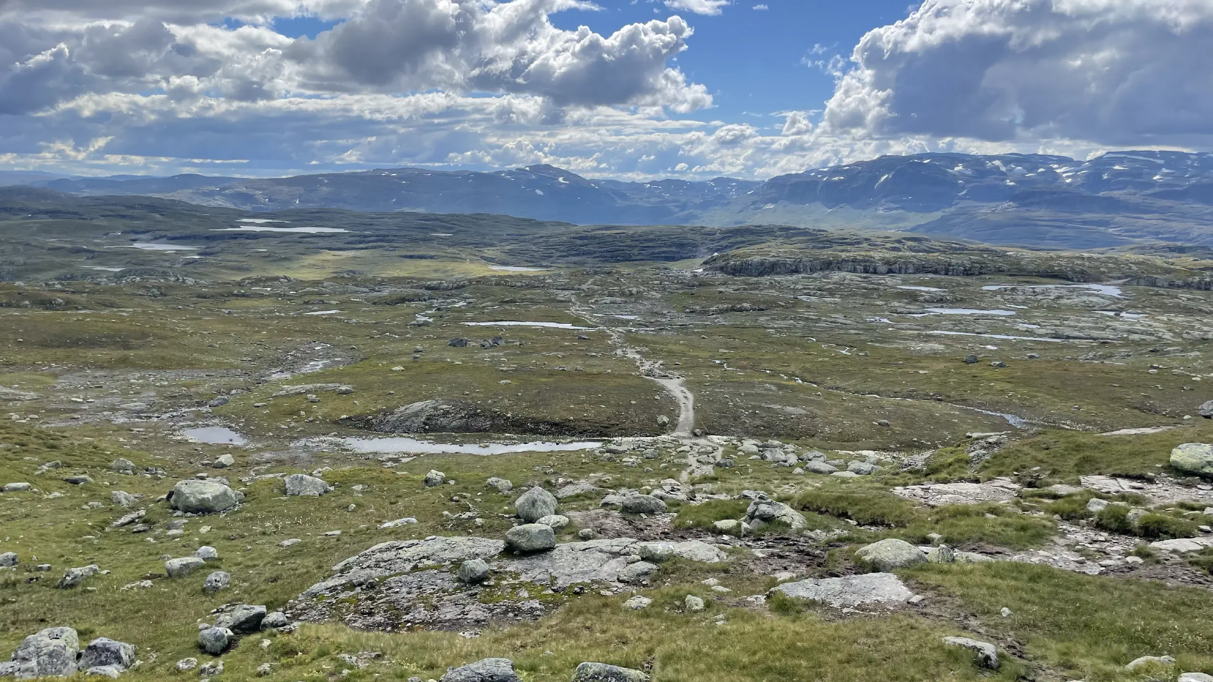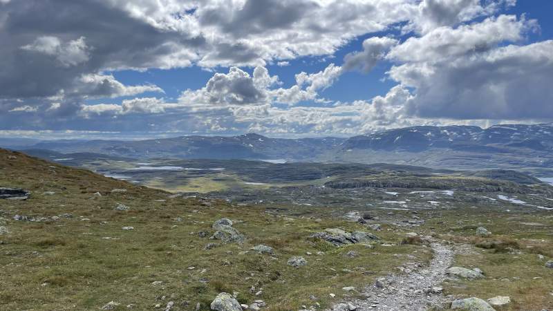One of my favourite spots in today’s section is on the descent after passing Årmoteggi towards Holmasjøen. Another nice view is towards Mannevatn where you can see the trail for kilometres ahead. Both are worth a shot.