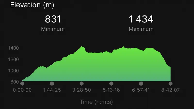 This section is exactly 25km and starts with a consistent ascend through light forest and simple rocks. Total ascent 1059m with an 831m descent. As always it’s the latter that’s problematic. Hiking uphill is all about pacing oneself and taking baby steps and/or rest steps.