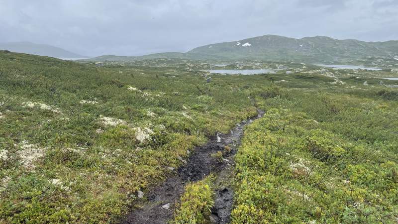 Weather could be better. Could probably be a lot better. Heavy rains, no wind and the most flies and mosquitoes I’ve seen in one day ever. While taking a breath of the fresh mountain air feels great, inhaling a few bugs into the lungs every few meters is less great. Good thing the cloudberries more than made up for it.