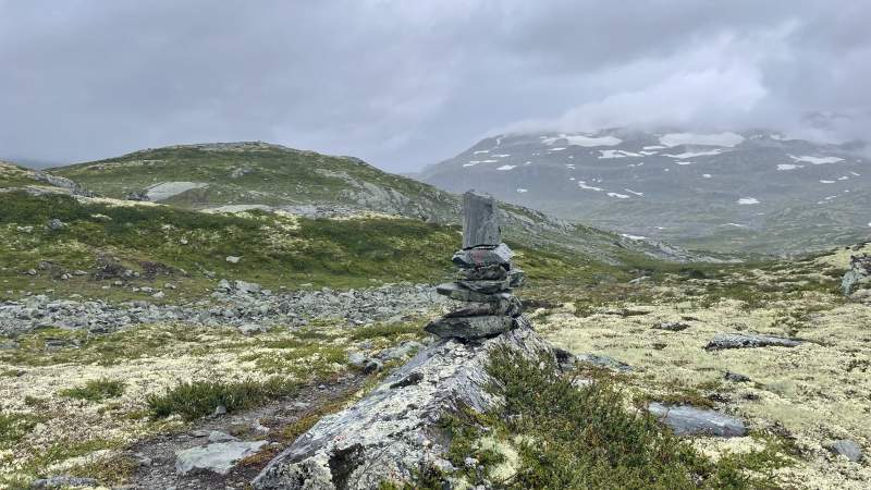 I’ve now hiked around 150km and the landscape has changed noticeably. Gone are the majestic alpine mountains of Breheimen, and to some extent also the big boxy mountains of Jotunheimen. Today I’m at Slettningsbu which also marks the end of the journey through Jotunheimen. Tomorrow I’m entering Skarvheimen. Where Breheimen is wild, looks inhospitable and majestic, Skarvheimen is more like the Scottish Highlands. Lots of slopes, but no steep climbs or glaciers to cross.