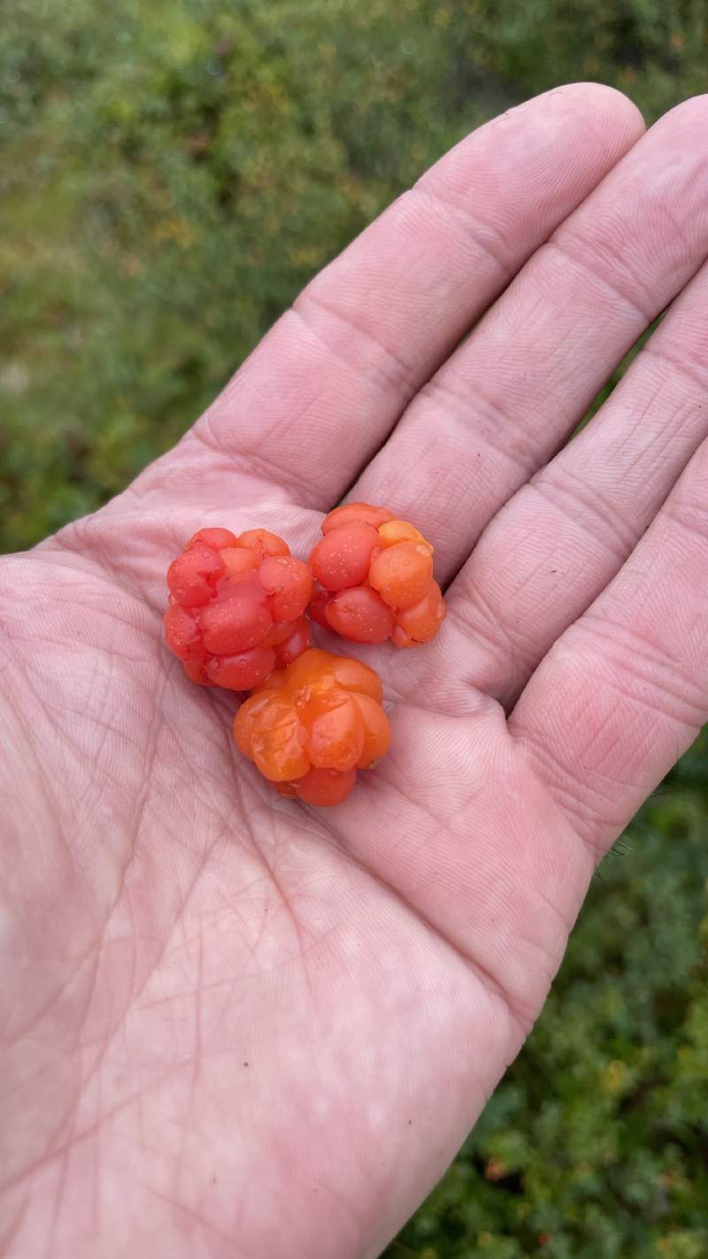 Had the good fortune of stumbling across a large field of cloudberries today and they were exquisite. Probably spent close to an hour gobbling down as many as I could. Nom!