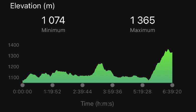 Today’s section started with a few kilometres on gravel road and had no heavy climbs or tough boulder areas to traverse. Total distance hiked was just under 25 km, with a total ascent of a mere 756m