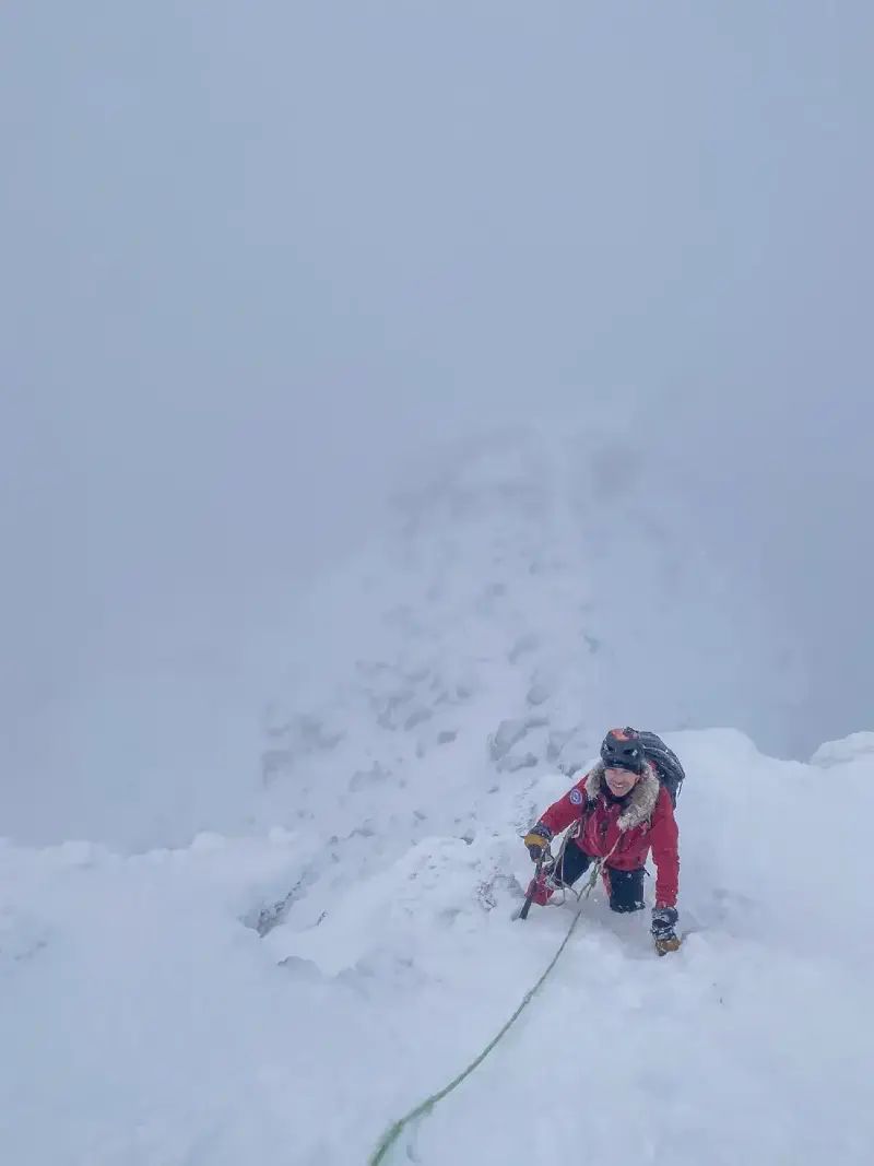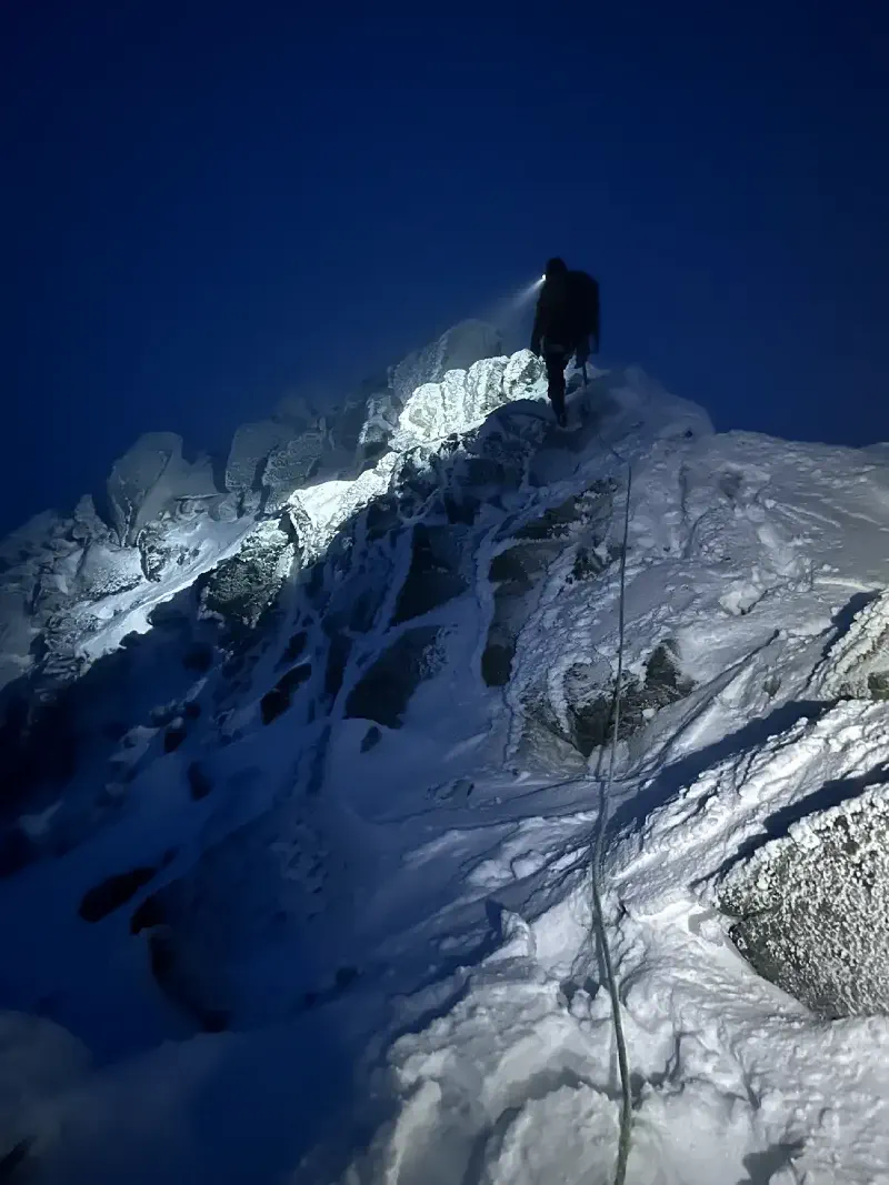 One main reason I got into mountaineering was to tackle my severe vertigo. So, crossing the ice and snow-covered knife-edge ridges wasn’t exactly my idea of fun. But the crampons did their job well. We were also fully secured with ropes, so although a fall would have been painful, it likely wouldn’t have been fatal. The good news about a fear of heights is that exposure therapy can really help. The first ridge was nerve-wracking, but each one got easier. When we crossed them again the next day, it felt like a walk in the park.