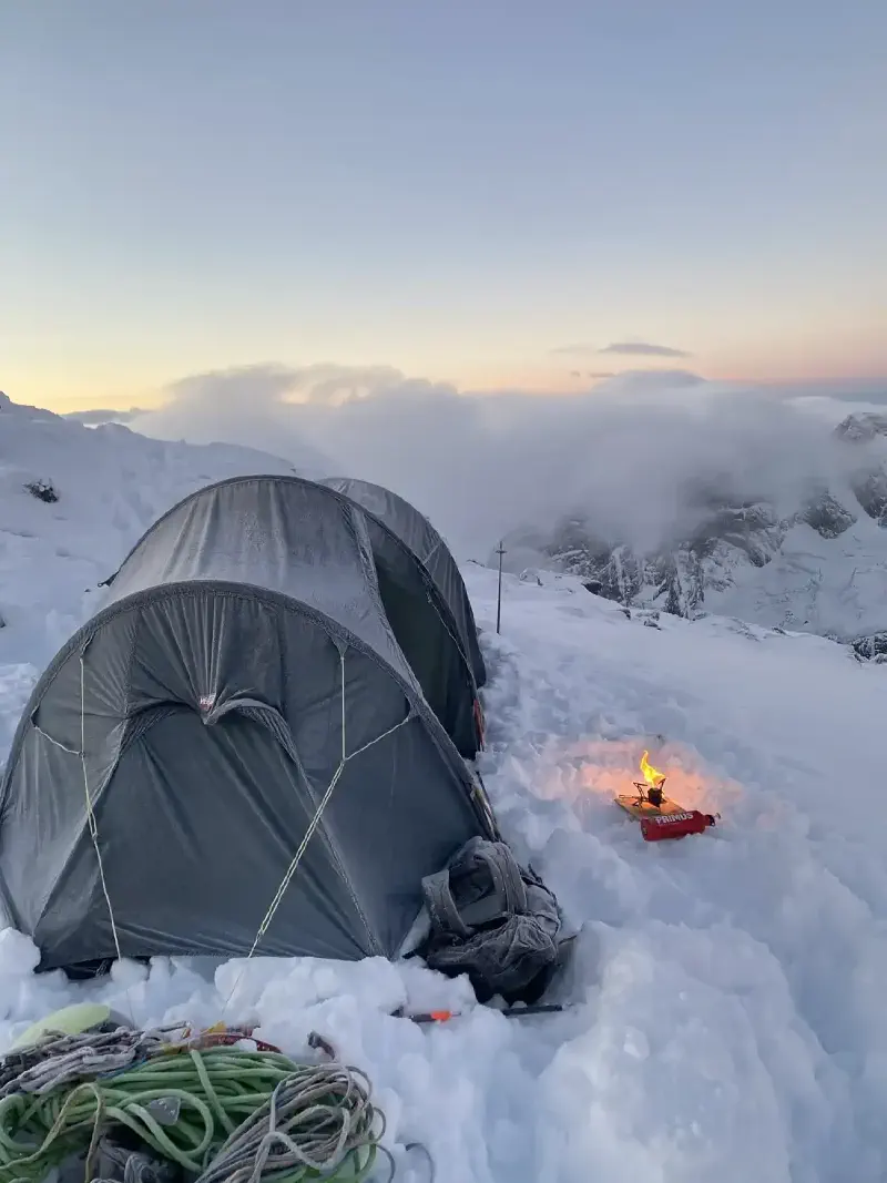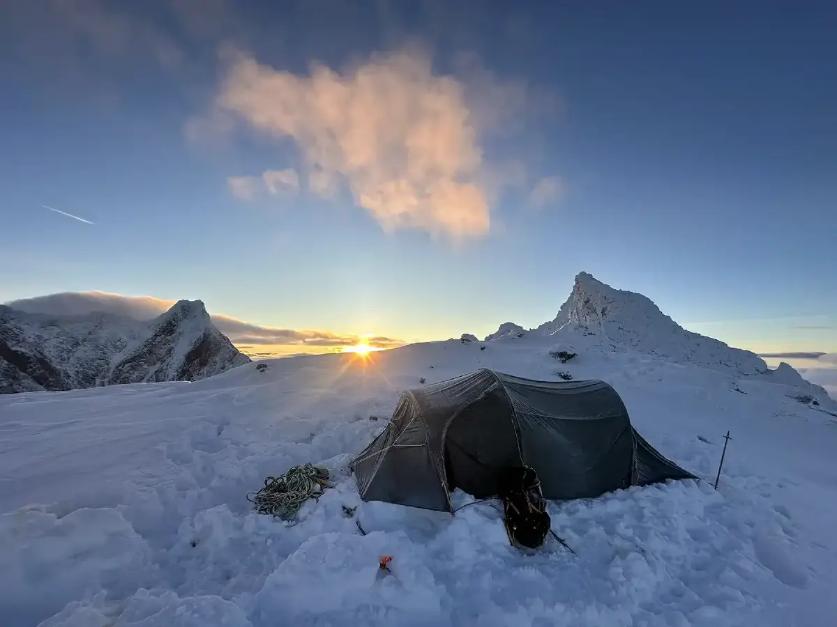 Waking up in a tent at an altitude exceeding 2,000 m is an unparalleled privilege. Although the air carried a bit of a chill, the morning greeted us with no wind, a cloudless sky, and a breathtaking dawn. There’s something indescribable about the morning light in the mountains, and this morning we were able to take it all in from the moment we unzipped the tent’s entrance.